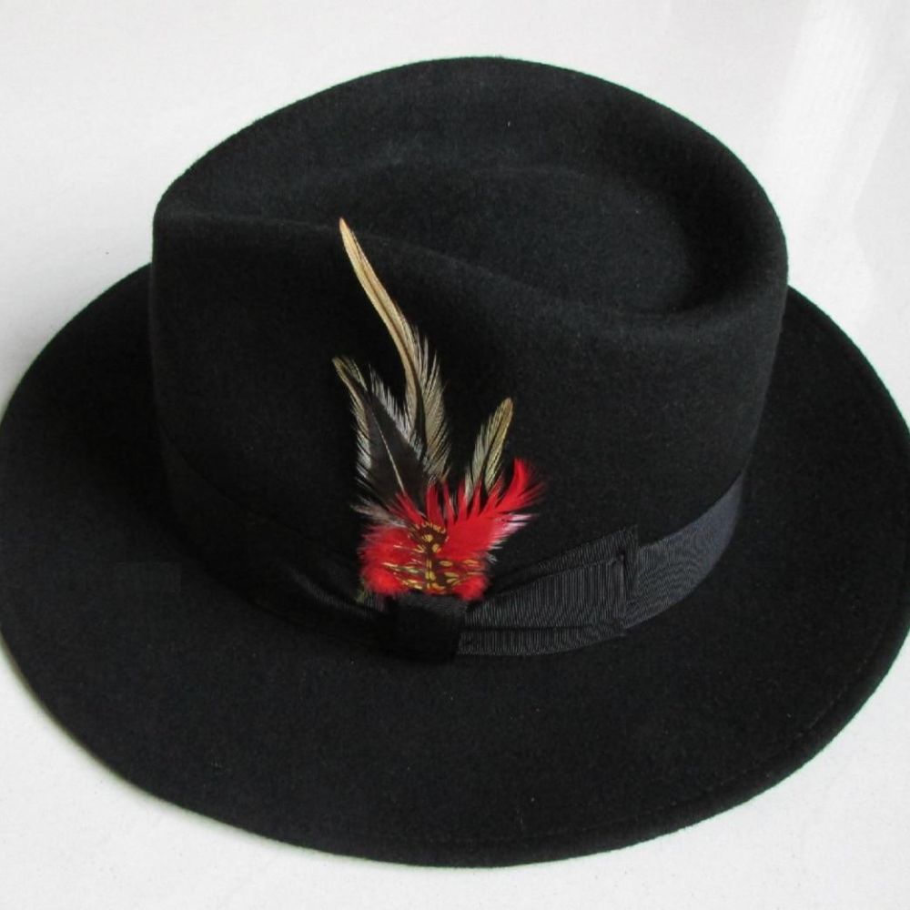 Fabriquée en feutre de laine de première qualité, cette pièce de mode est intemporelle. Sa silhouette élégante est agrémentée d’un ruban classique entourant la base de la couronne et décoré d’une élégante plume. Ajoutez du style unique à votre look et choisissez parmi les teintes rouge, noir et beige pour compléter votre garde-robe.