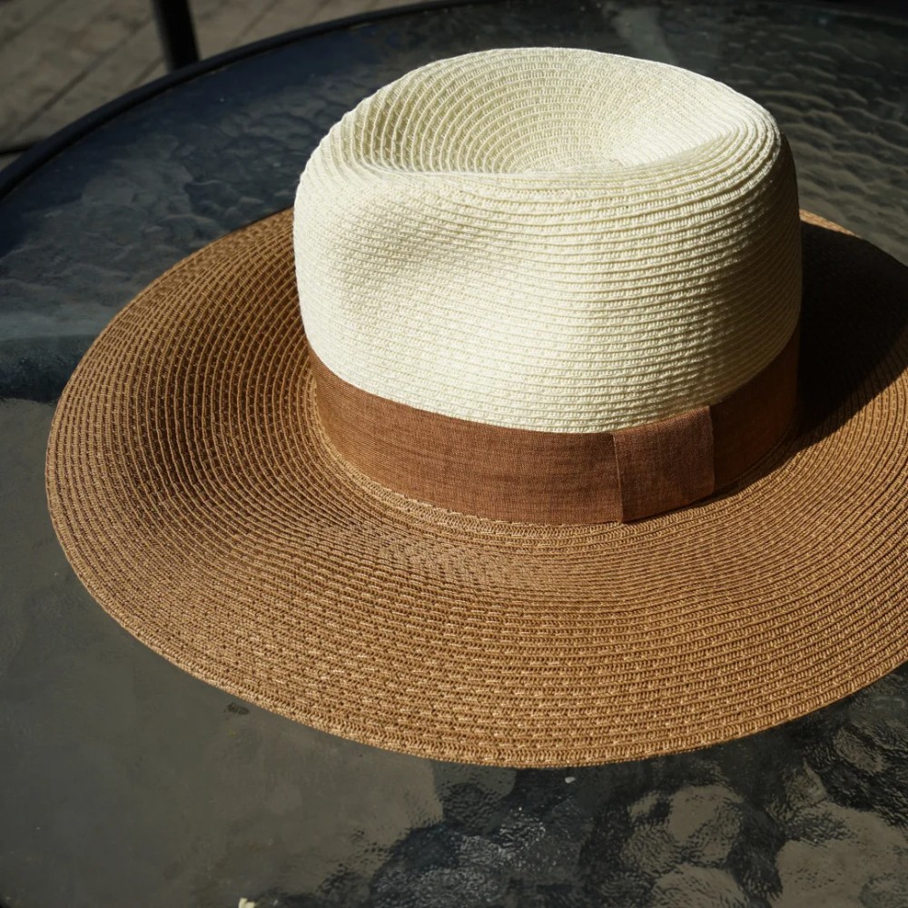 Imaginez-vous en terrasse, un coktail à la main, protégée du soleil tout en affichant un style raffiné. Ce chapeau bicolore au design élégant épouse la saison estivale avec légèreté.