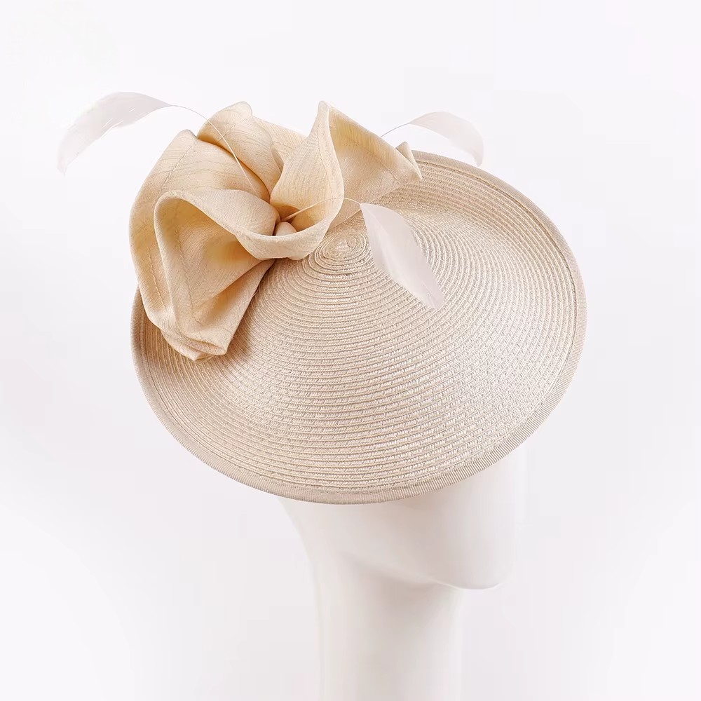Imaginez-vous arriver à la cérémonie, coiffée de ce chapeau bibi de mariage raffiné, délicatement incliné. Son nœud plissé et ses petites plumes dansantes attirent le regard des invités, et tout le monde vous trouve sublime !